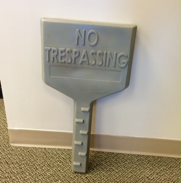 Plastic trespassing sign, installs without fasteners on standard field post